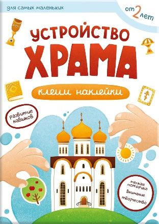 Первые навыки. Устройство храма. Наклейки Эта книга поможет: - познакомить малыша с устройством православного храма; - развить мелкую моторику, логику и внимание; - запомнить названия деталей интерьера и предметов в храме.