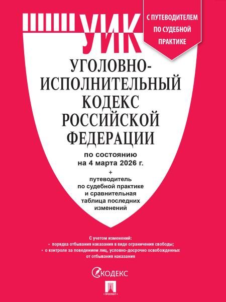 Уголовно-исполнительный кодекс РФ УИК РФ по сост. на 4.03.2026 с таблицей изменений и с путеводителем по судебной практике.-М.:Изд-во Проспект,2026. Текст Кодекса сверен с официальным источником и приводится по состоянию на 4 марта 2026 года с использованием общепринятых сокращений. Представленное вашему вниманию издание учитывает только изменения, ...