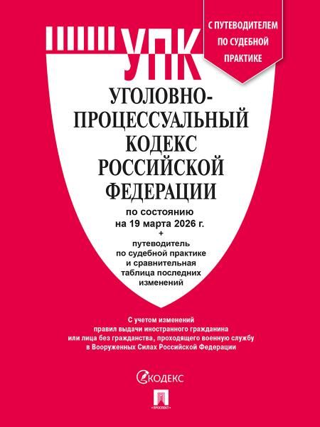 Уголовно-процессуальный кодекс РФ УПК РФ по сост. на 19.03.2026 с таблицей изменений и с путеводителем по судебной практике.-М.:Изд-во Проспект,2026 Текст Кодекса сверен с официальным источником и приводится по состоянию на 19 марта 2026 г. с использованием общепринятых сокращений. Представленное вашему вниманию издание учитывает только изменения, ...