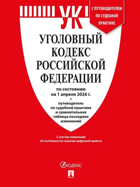 Уголовный кодекс РФ УК РФ по сост. на 1.04.2026 + путеводитель по судебной практике и сравнительная таблица последних изменений.-М.:Изд-во Проспект, Текст Кодекса сверен с официальным источником и приводится по состоянию на 1 апреля 2026 г. с использованием общепринятых сокращений. Представленное вашему вниманию издание учитывает только изменения, ...