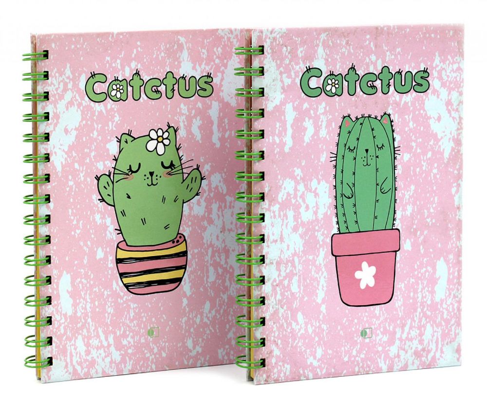 Блокноты Кактус Кот высокий, утренний (А5, 160 страниц, пружина, блок желтый)(комплект из 2-х блокнотов)