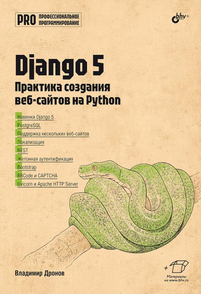 Дронов В.А. Django 4. Практика создания веб-сайтов на Python Книга посвящена разработке веб-сайтов на языке Python с применением веб-фреймворка Django. Представлены новинки Django 4 и дано наиболее полное описание его инструментов: моделей, контролеров, шаблонов, ...