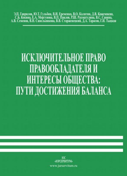 Исключительное право правообладателя и интересы общества: пути достижения баланса - Гаврилов Э.П., Гульбин Ю.Т., Еременко В.И., Кокина