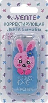 Корректирующая лента 100% CUTE.RABBIT 5мм Корректирующая лента "deVENTE. 100% Cute. Rabbit" 5 мм, голубой непрозрачный корпус, фронтальный аппликатор, в картонном блистере