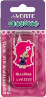 Корректирующая лента NicoNico:-) 5мм розов.корп Корректирующая лента deVENTE. NicoNico:-) 5 ммx06 м, розовый непрозрачный корпус, фронтальный аппликатор, в картонном блистере