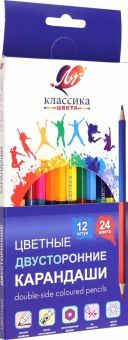Карандаши 24цв/12шт двустор. Классика,33С 2190-08 Набор двусторонних карандашей ЛУЧ - прямо как из детства! С каждой стороны у карандаша разные цвета - 12 карандашей = 24 цвета! Яркие, сочные деревянные карандаши серии "Классика цвета" изготовлены из ...